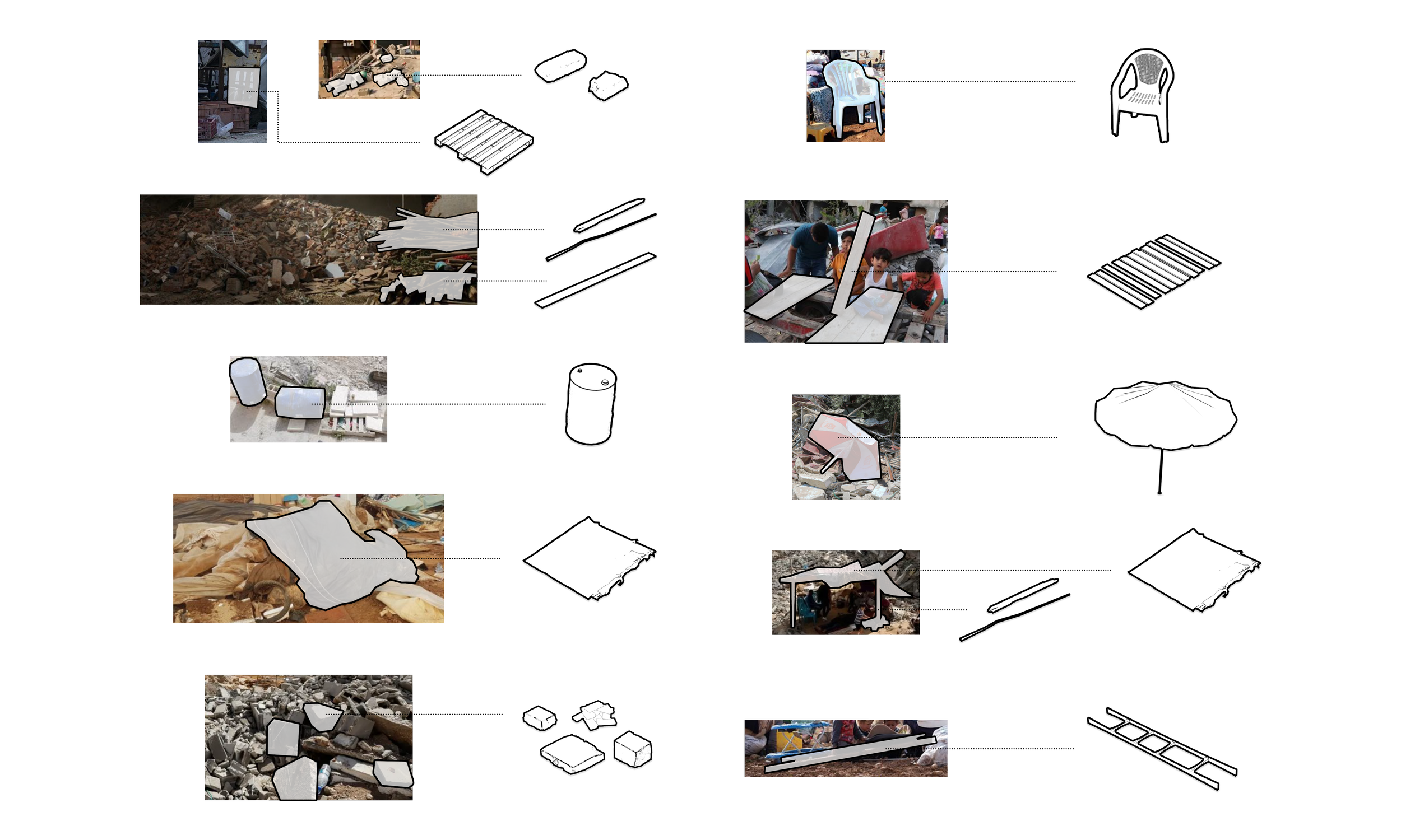 ‘Rebuilding as resistance’ is my concept, and the target is to enhance this spatial practice by designing an architectural manual and emphasizing the power of rebuilding as a crucial part of the power of Palestinian resistance. I designed a series of structures in this manual using discarded materials as a medium. These materials found in Palestinian land are empowered with culture, and using these materials symbolizes a cultural resistance to Israeli power.
